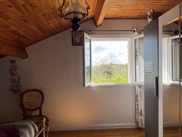 La Suite Perle se situe au-dessus de la table d'hôtes. Elle vit au rythme de la maison et peut laisser passer quelques sons de la vie quotidienne aux heures de repas.
